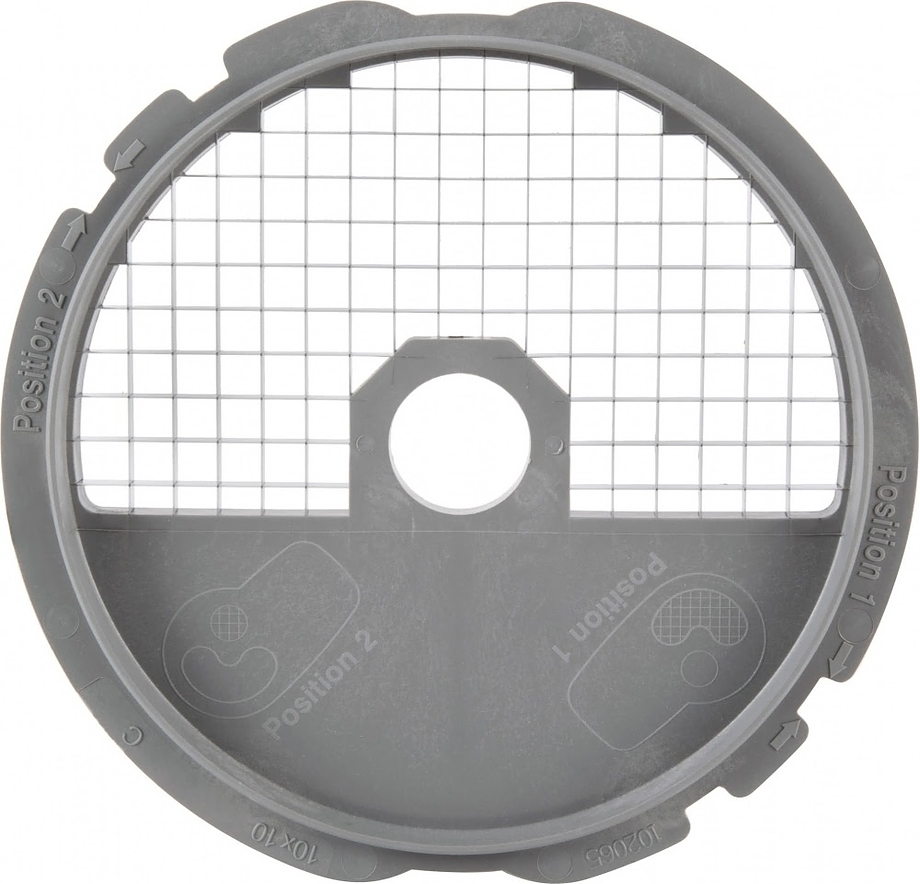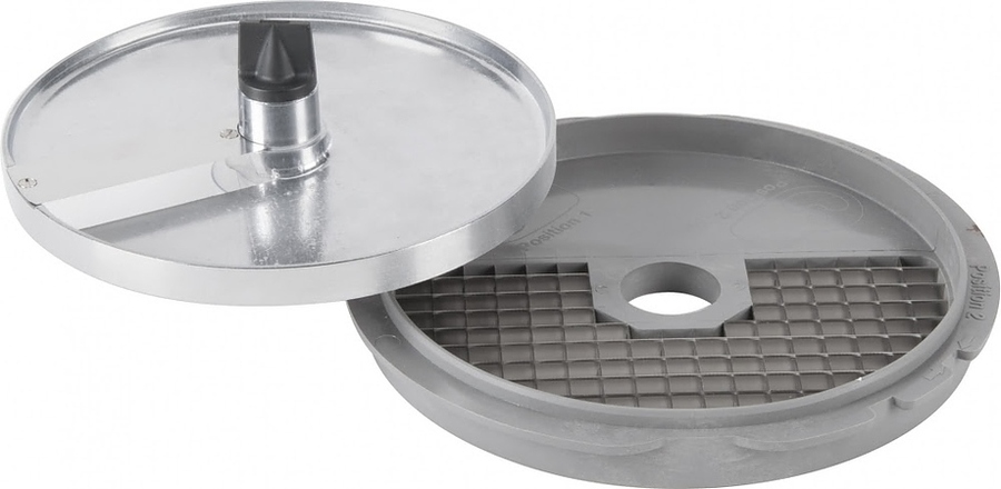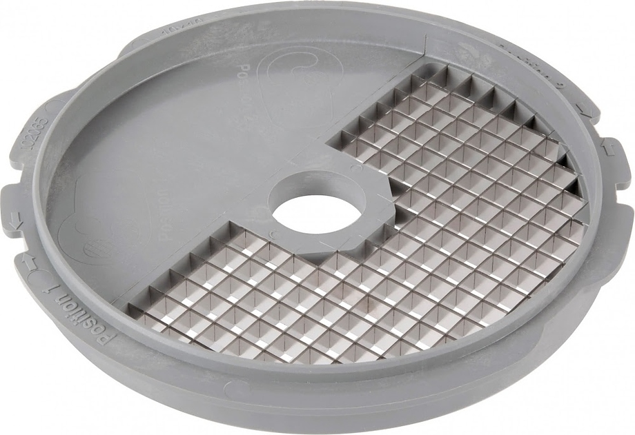 комплект 27114W: диск 29334 + решетка 102065, Устанавливается в рабочий отсек овощерезки на вал двигателя, используется для моделей  CL30/CL40/R402, изготовлен из нержавеющей стали.Используется для нарезки картофеля, моркови, кабачков, свеклы, репы на кубики размером 10х10х10 мм.
