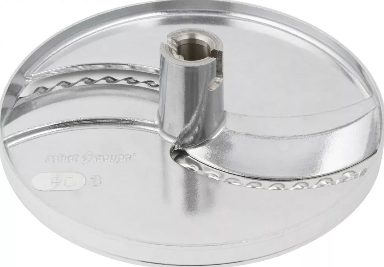 для CL50/52/55/60/R502/R602. Диск нарезка ROBOT COUPE 27069W 3 ММ волнистый производства Robot Coupe (Франция) предназначен для нарезки волнистыми ломтиками толщиной 3 мм продуктов на салаты, супы и рагу, а также для нарезки картофеля для приготовления во фритюре. Выполнен из алюмиия.