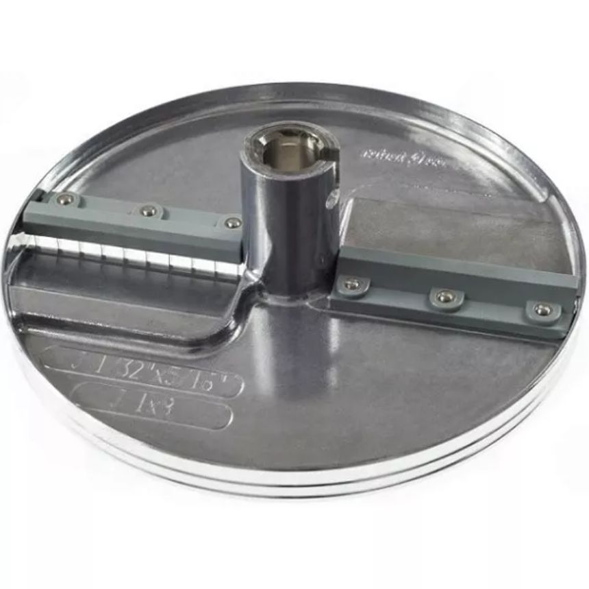 Устанавливается в рабочий отсек овощерезки на вал двигателя, предназначен для моделей CL 50/52/55/60 и R 502. Изготовлен из алюминия. Используется для нарезки соломкой овощей.