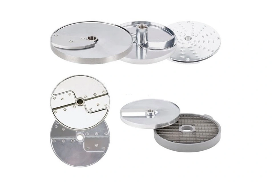 6 дисков: ломтик.2 и 5 мм, терка 2мм, сол 3х3 и 4х4, куб.10х10.  изготовлены из алюминия