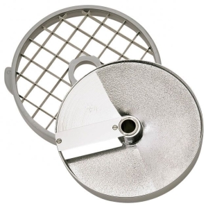 ЗАМЕНА НА ДИСК КУБИКИ ROBOT COUPE 28115W 25ММ MINERAL+ комплект 28115: диск 28133 + решетка 28122, Устанавливается в рабочий отсек овощерезки на вал двигателя, используется для моделей CL50/52/55/60, R502, изготовлен из алюминия. Используется для нарезки картофеля, кабачков, репы, картофеля фри, дыни, арбуза на кубики размером 25х25х25 мм.