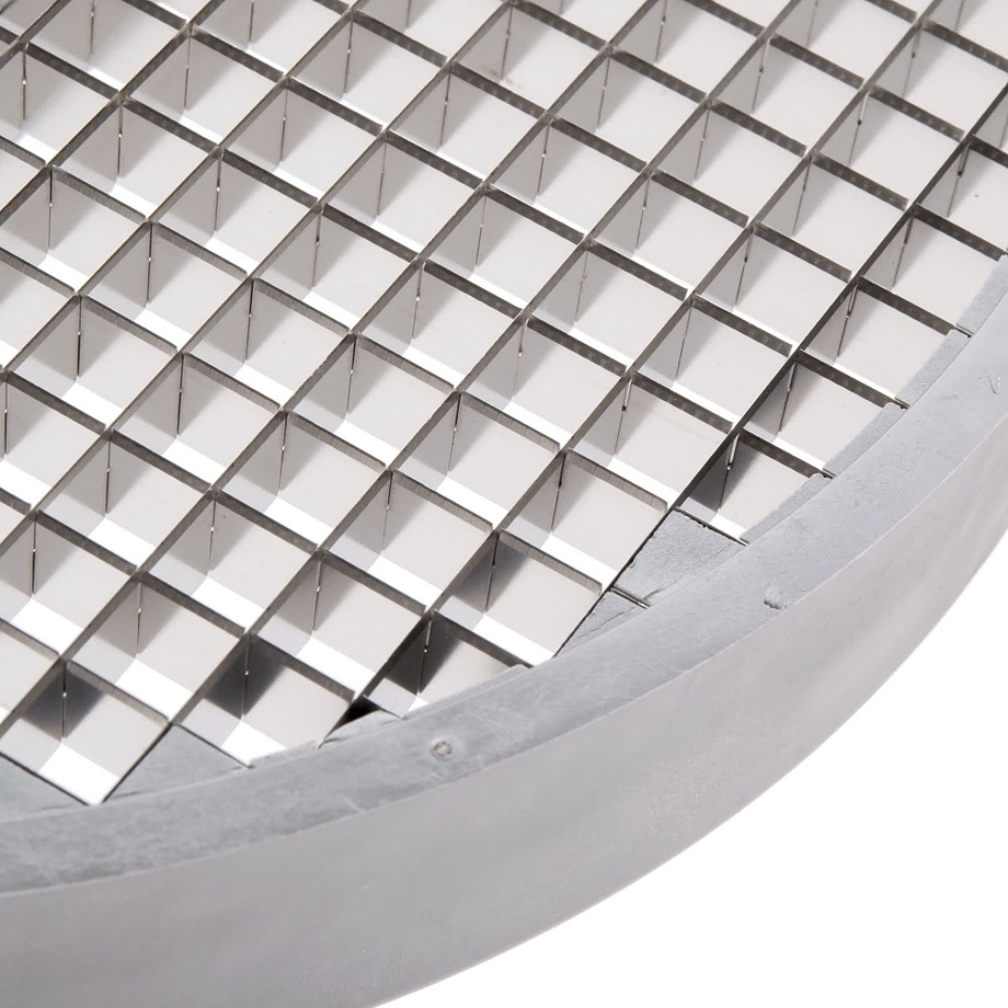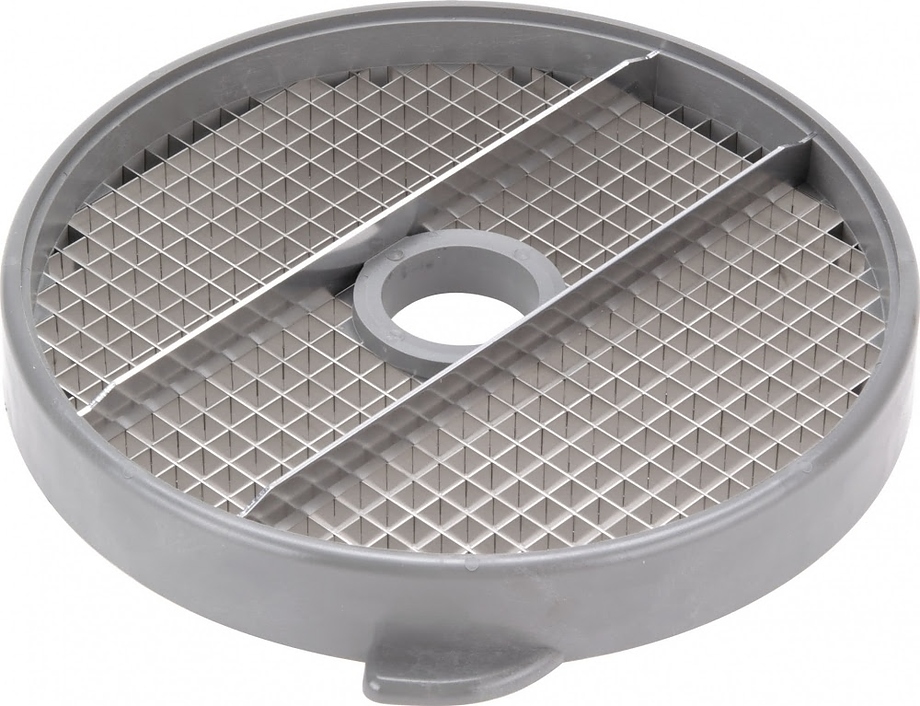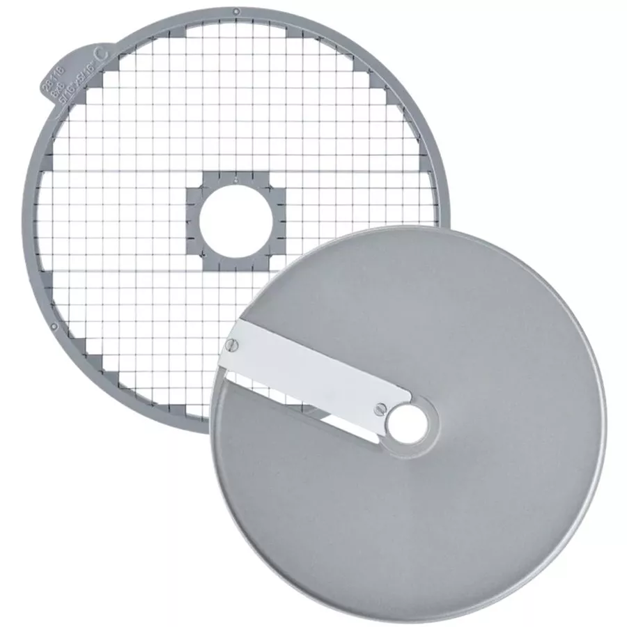 комплект 28111: диск 28129 + решетка 28118, Устанавливается в рабочий отсек овощерезки на вал двигателя, используется для моделей   CL50/52/55/60/R502/R602, изготовлен из алюминия Используется для нарезки картофеля, моркови, кабачков, свеклы на кубики размером 8х8х8 мм.