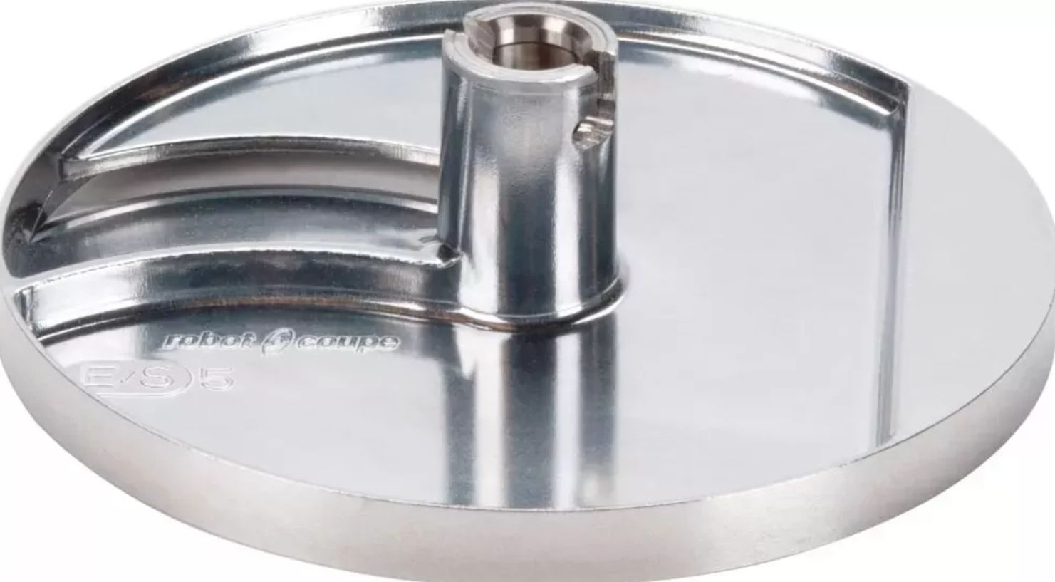 Устанавливается в рабочий отсек овощерезки на вал двигателя, используется для моделей   CL50/52/55/60/R502/R602, изготовлен из алюминия. Используется для нарезки томатов, кабачков, баклажанов, лука-порея, грибов, огурцов, перца, свеклы, салата, редьки на на ломтики толщиной 5 мм