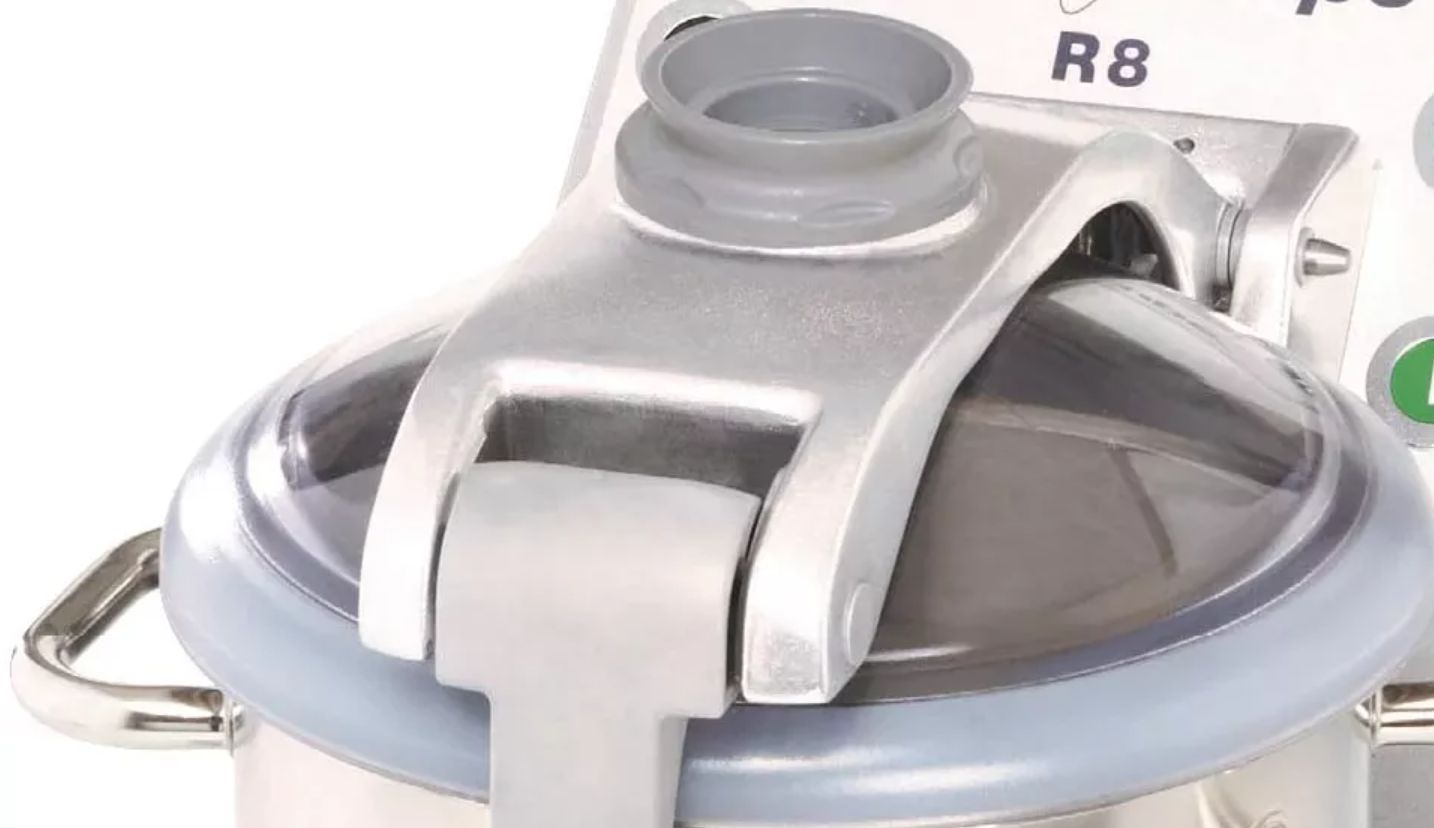 Настольный куттер  измельчает, приготавливает тонкие фарши, эмульсии, взбитые сливки, размельчает орехи и замешивает тесто. Габариты 315х545х645 мм, трёхфазный. Мощность 2200 Вт. 2 скорости: 1500 и 3000 об/мин. Импульсное управление. Чаша из нерж. стали объёмом 8 л с 2 ручками. Поставляется со съёмным ножом низкой посадки из нерж. стали с 2мя гладкими лезвиями. Укомплектован элктрокабелем без штепсельной вилки.