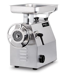 510x260х530 мм, 1,6 кВт, 220В, 500 кг/час, реверс, система UNGER (подрезная решётка, нож, решётка, нож, решётка), диаметр отверстий в решётках 6 мм и 10 мм, ножи со сменными лезвиями, мясорубочная часть - нержавеющая сталь, ножи и решётки - нержавеющая сталь, лоток и горловина - нержавеющая сталь. Диаметр загрузочной горловины для продукта 52 мм, диаметр горловины шнека и диаметр решеток 98 мм. Просторный корпус обеспечивает лучшее охлаждение при интенсивной нагрузке