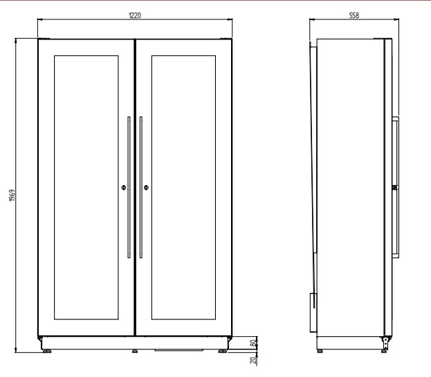 Код A1MIAMIBRP/873; 1220х500х1970мм, 220В, +4...+18С, 250кг, с встр.агр. R290, 86+86 бут, цвет серый 873