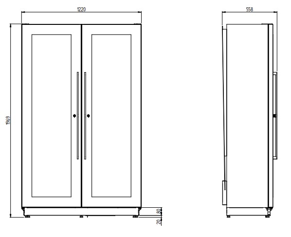 Код A1MIAMIBRVTP/873; 1220х500х1970мм, 220В, +4...+18С, вентилируемый (динамический холод) 250кг, с встр.агр. R290, 86+86 бут, цвет серый 873