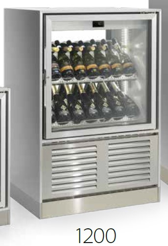 Код: GM2C1U - 837x623x1232, 220В, 0,3кВт, со встр. агрегатом R404a, t=+4/+18C, вент. охлаждение, 4 полки (до 68 бут.), объем 228л, цвет - стандартный