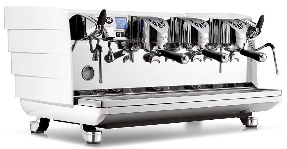 мультибойлерная, 1055x660x510 мм, 220 V , 9,5 кВт ,  91 кг, трехгруппная (высокие), для сегмента Specialty Coffee, с технологией T3 (1 паровой бойлер - 17,3л + бойлер на каждую группу - 0,7л), ЖК дисплеем, дисплеем на каждую группу (показывает время экстракции), электронным контролем помола, независимым программированием температур групп, имеет корпус современного дизайна. Система экстракции HEES, благодаря которой весь аромат, заключенный в кофейных зернах, попадает в чашку эспрессо, 2 кранами подачи пара "Cool Touch" из нержавеющей стали, которые остаются холодным и предотвращают ожоги при прикосновении, рычагами регулировки пара Push&Pull, 1 краном подачи горячей воды с экономайзером (смесителем), электронными датчиками уровня и t воды в бойлере, контролем t PID и других параметров через дисплей, светодиодной подсветкой на задней панели. Т3 - программирование и контроль t воды в основном бойлере, в бойлере на каждую кофейную группу и t воды на выходе.