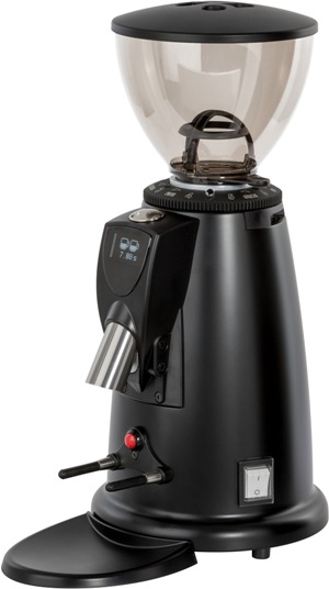 194х308х430 мм, 7,5 кг, 0,3кВт, 220В, 1400 об/мин, диам. ножей 58мм, бункер 0,5 кг, 3 программируемые дозы и ручная дозировка, 2гр/сек, счетчик порций, черный, запуск помола при нажатии рожком на микровыключатель