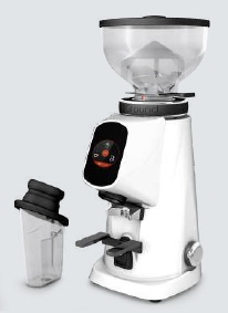 169x240x473 мм, 220 V, 0,25 кВт, 9 кг, БЕЛАЯ, плоский жернов, диаметр 64 мм RED SPEED, 1400 об./мин., реугировка дозы в секундах, емкость колпака: 250 г,  микрометрическая регулировка помола, дисплей меняется при выборе эспрессо, мока, фильтер, емкость контейнера для молотого кофе; может использоваться и как ON DEMAND  и как фильтр кофемолка,  производительность до 1,4 кг в день