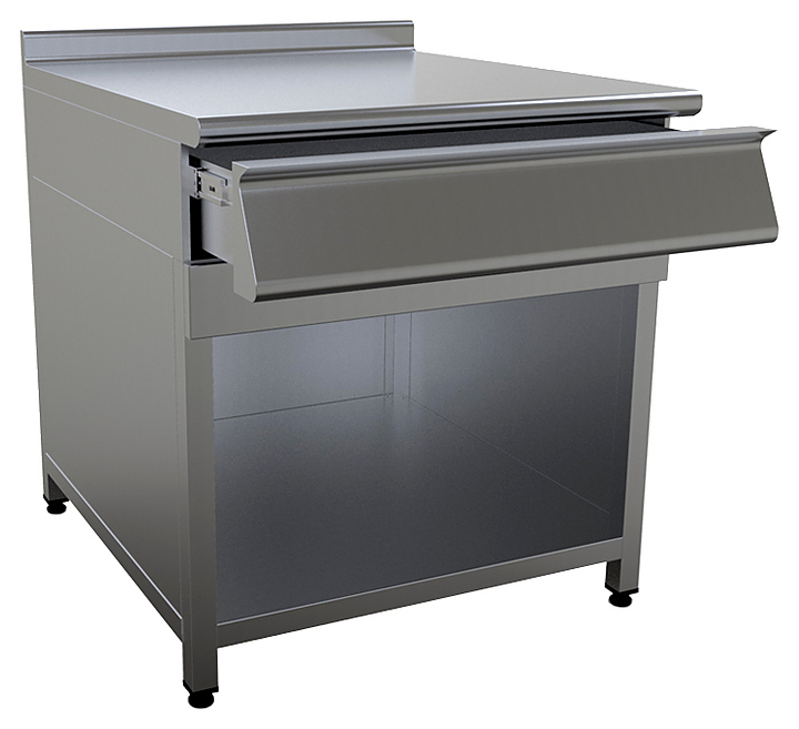 500х700х870 Нейтральный модуль шириной 50см полузакрытый, с выдвижным ящиком, корпус из н.с. AISI 430, каркас проф. труба 40х40мм, полка сплошная, регулируемые по высоте ножки, вес 35кг.