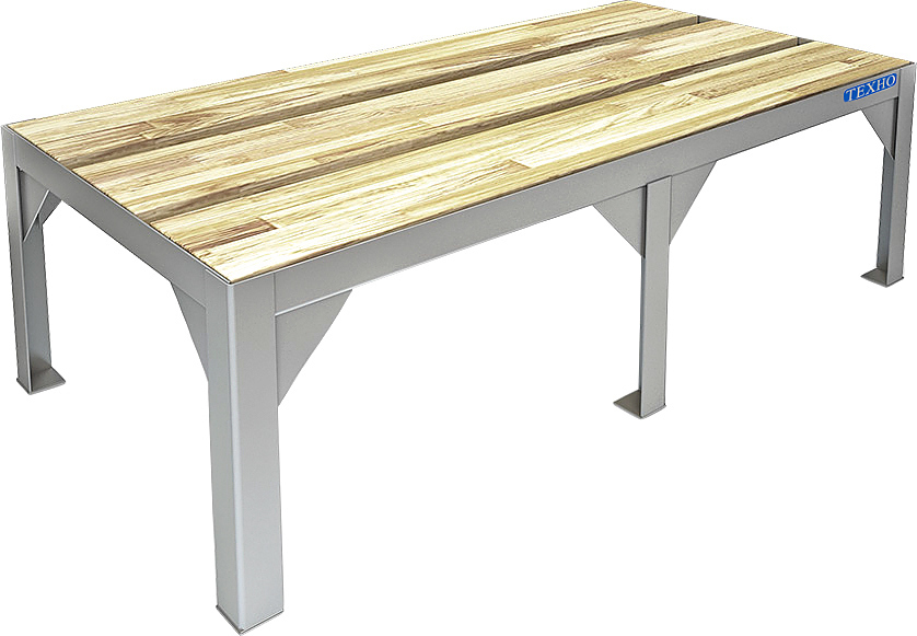 500х1000х300мм, Подтоварник, столешница деревянный настил, каркас сварной из уголка 40х30 толщиной 2мм, покрытого порошковой краской серого цвета, максимальная нагрузка 500 кг. Подтоварник поставляется в собранном виде.