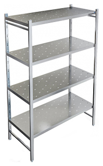 1590х510х1820мм, Стеллаж технологический разборный, стойки из трубы 40х20 нержавеющей стали марки AISI 304 толщиной 1,2мм. Четыре перфорированные полки из нержавеющей стали марки AISI 304 толщиной 0,8мм. Расстояние между полками регулируемое с шагом 120мм. Регулируемые опоры. Стеллаж поставляется в разобранном виде.