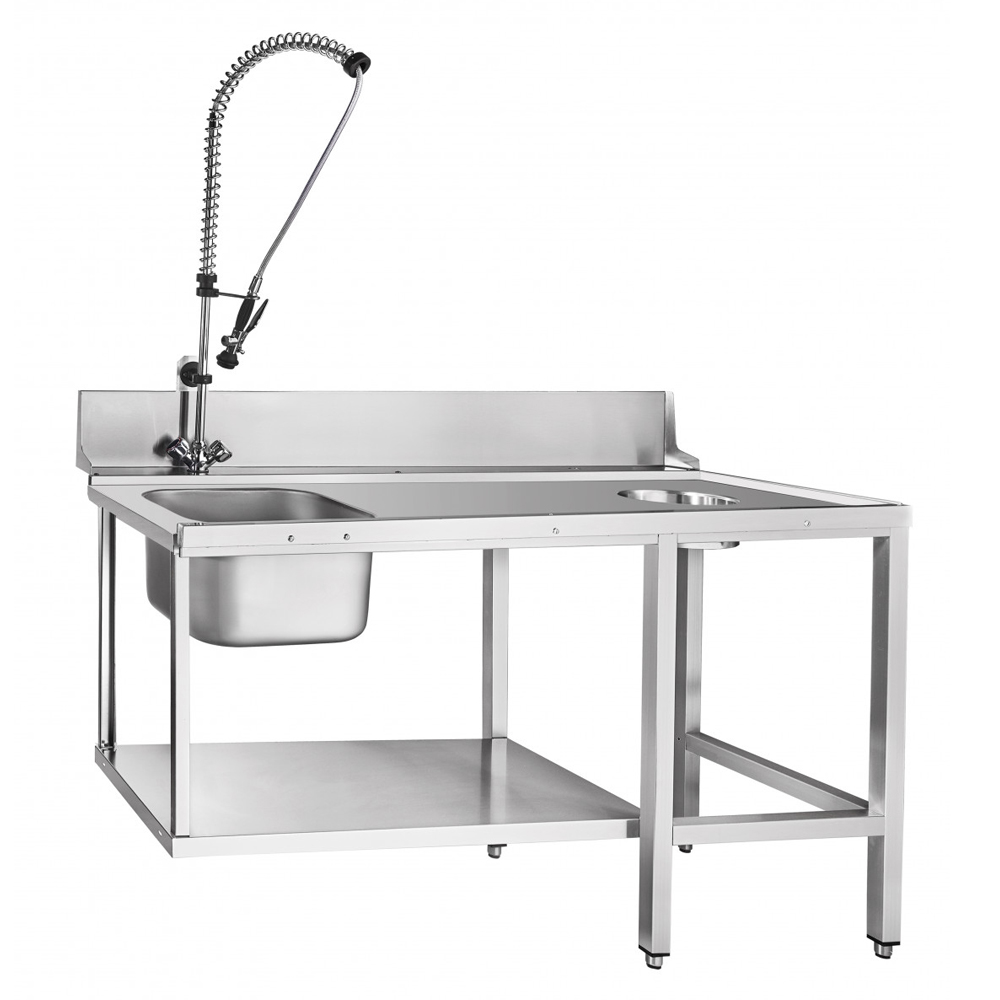1512х702х1080(1800)мм, Стол предмоечный СПМП-6-5 (1500x671мм) душ-стойка, сбор отходов, мойка цельнотянутая 400х400х250