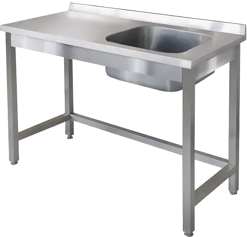 1200х700х850мм, Стол приставной к посудомоечной машине с бортом высотой 70мм. Справа расположена цельнотянутая емкостью 500х400х250 из нержавеющей стали марки AISI 304 толщиной 1мм. Столешница из нержавеющей стали марки AISI 304 толщиной 1,0мм. Каркас разборный из трубы 40х40 нержавеющей стали марки AISI 430 толщиной 1,2мм. Обвязка из трубы 40х20 нержавеющей стали марки AISI 430 толщиной 1,2мм. Крепление к посудомоечной машине справа. Регулируемые опоры. Стол поставляется в разобранном виде.