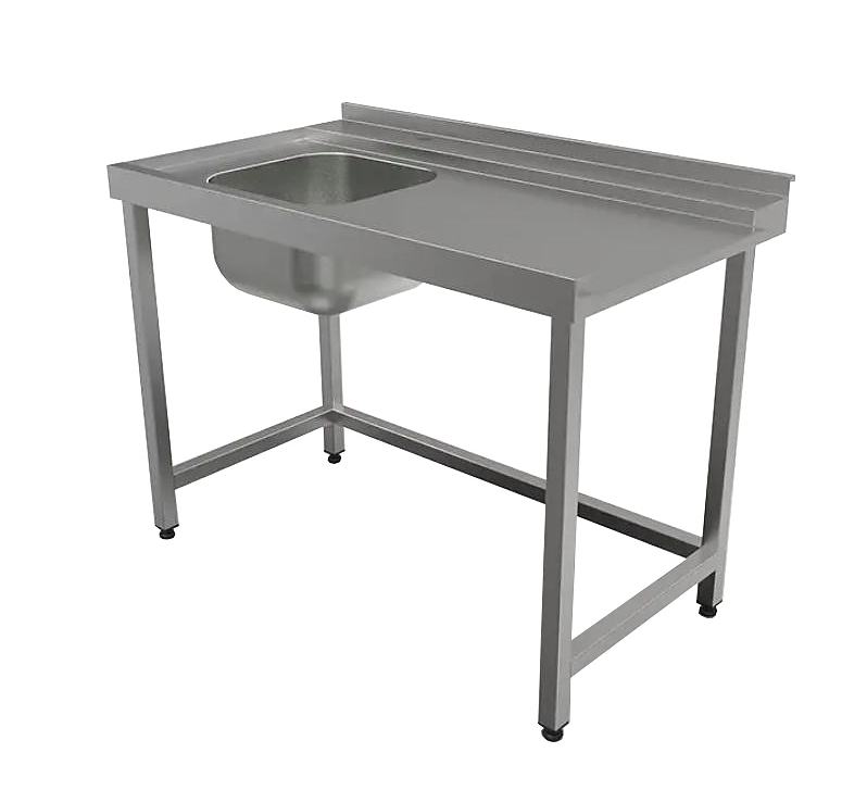 1200х700х870мм, Стол для посудомоечной машины входной  (столешница - нерж. сталь. aisi 430, усиление ЛДСП, емкость 400х400х250, отверстие под смеситель, каркас сварной нерж. труба  40х40, борт,  обвязка с 3х сторон), Левый