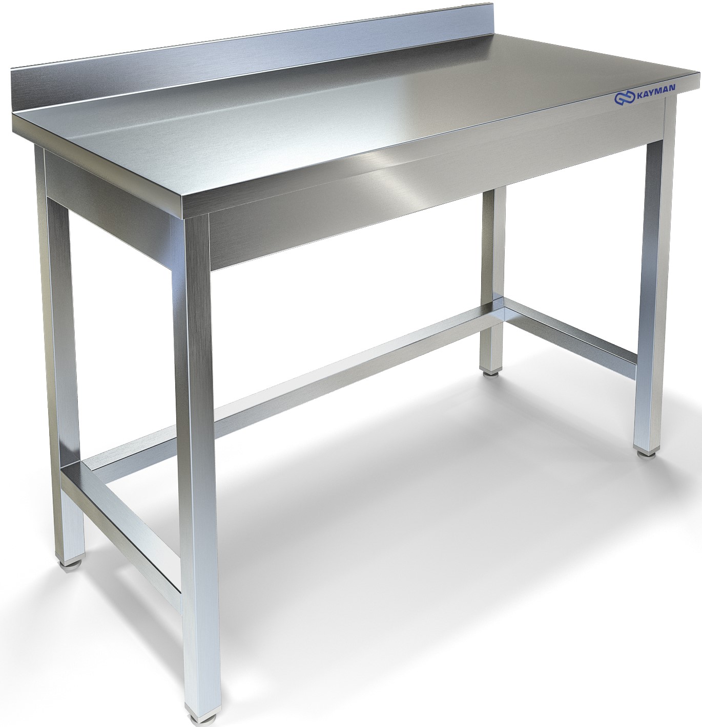 1500х700х850, каркас разборный, труба 40х40 из нержавеющей стали AISI 430 толщиной стенки 1,2 мм, обвязка, рабочая поверхность AISI 430, толщиной 0,8 мм, усиление ЛДСП 16 мм, борт плоский, 0,28V, м3