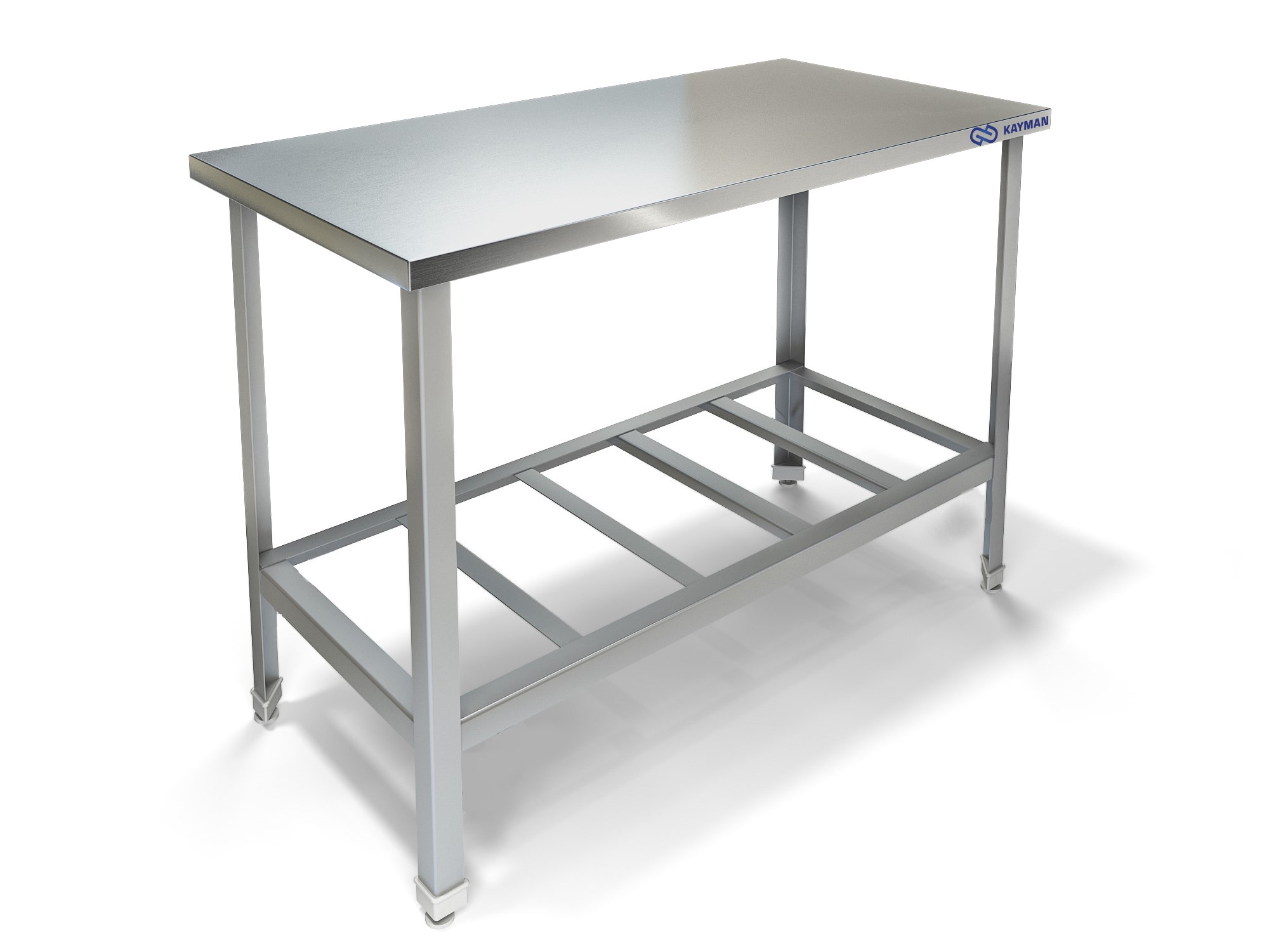 1500х800х850, каркас разборный, уголок из оцинкованного металла толщиной 1,5 мм, полка-решетка оцинковка, толщиной 0,8 мм, рабочая поверхность нержавеющая сталь AISI 430 толщиной 0,8 мм, усиление ЛДСП 16 мм,, 0,23V, м3