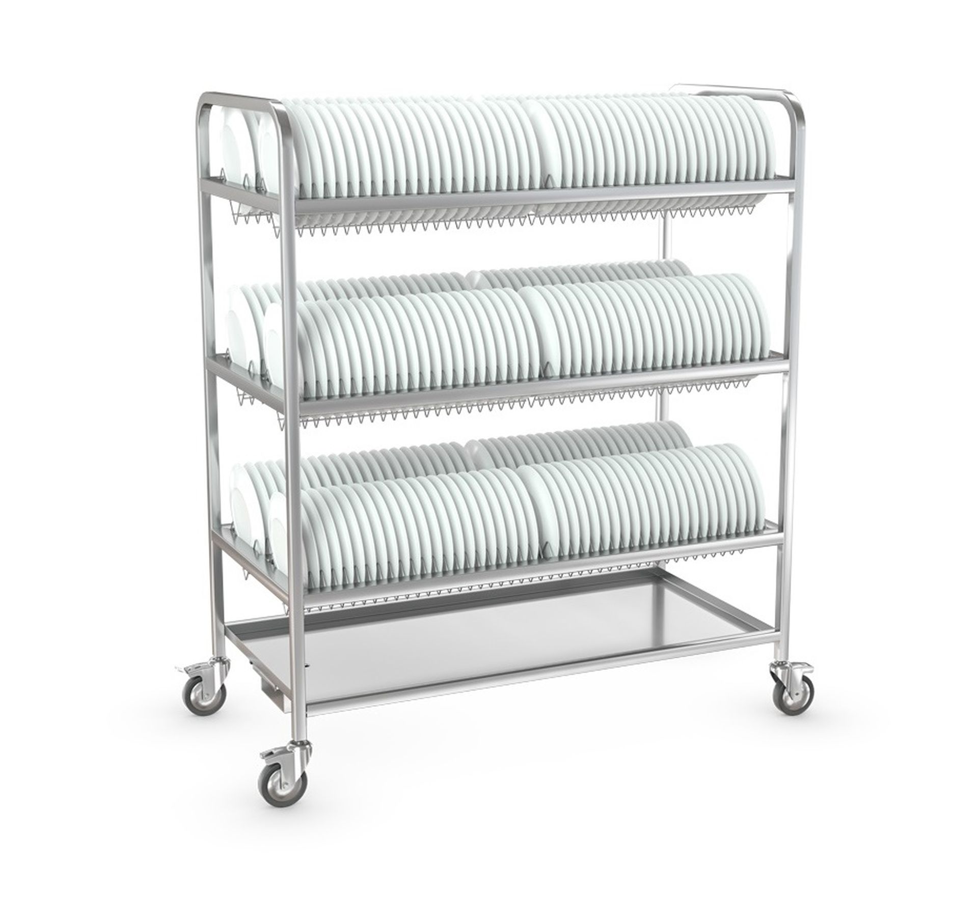 1170х600х1430 мм, AISI304, 3 яруса, на 246 тарелок, 2 колеса с тормозом, сварная