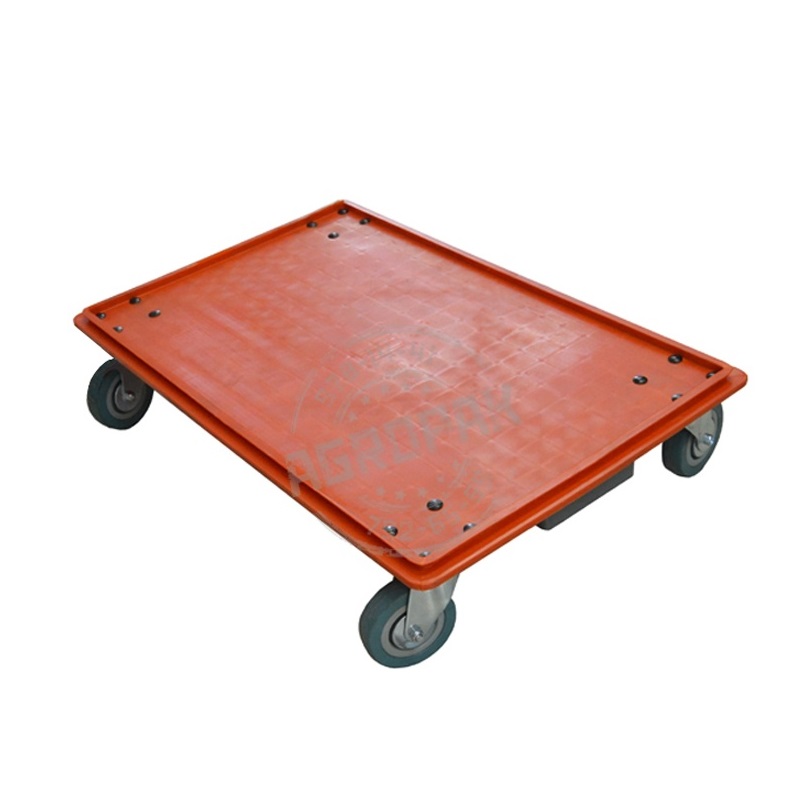 Материал - пластик ABS. Допустимая статическая нагрузка 200кг. Диаметр колес 100мм. Для перемещения нагруженной тележки можно использовать крюк арт.K501 (приобретается отдельно)
