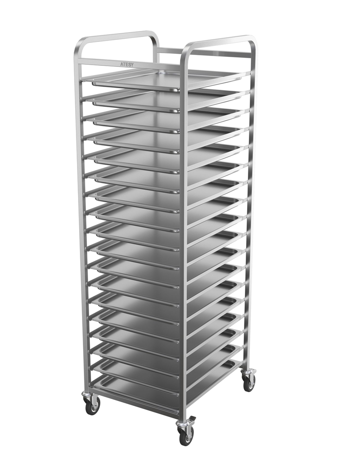 590х680х1900 мм, сварная, AISI304, вместимость GN-2/1 - 18шт (GN1/1 - 36шт.), расстояние между уровнями 90 мм, 2 колеса с тормозом