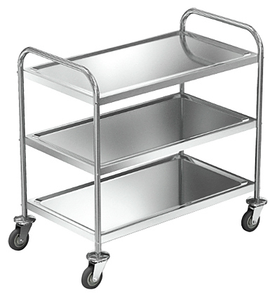 860х530х930мм, Тележка сервировочная трех ярусная, каркас разборный из трубы d=25 нержавеющей стали марки AISI 201 толщиной 1,2мм. Полки из нержавеющей стали марки AISI 201 толщиной 0,8мм. Тележка поставляется в разобранном виде. производство Китай