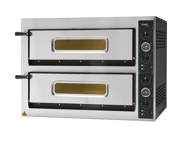 900х790х750мм, 123 кг, 8,4кВт, 380В, 2 камеры 660х660х140мм, t: 50°C – 500°C, вместимость - 8 пицц по 33 см (по 4 на камеру)