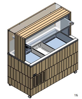 Код A1DOGEWVTRF14P/W; 1470х730х1530мм, 0,71кВт, 220В, 0…+3С, 245кг, 4GN-1/1, с встр.агр. R290, венге