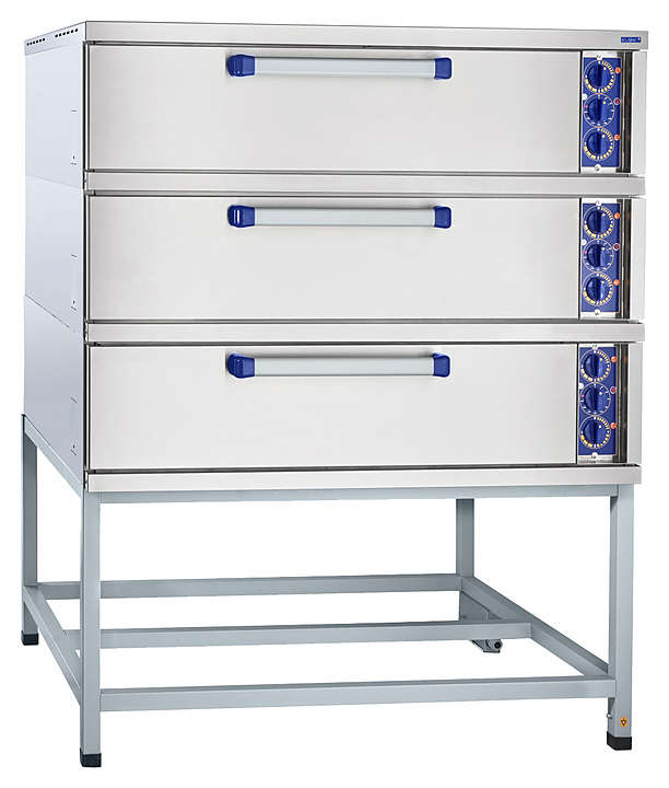 1300x1080x1355мм, Шкаф пекарский подовый ЭШ-3К электрический, 3 пекарные камеры 1000х800х180 мм, нерж. ТЭН-ы, раздельная регулировка верхних и нижних ТЭН-ов (+20...+270 С), нерж. облицовка, нерж. дверцы, краш. боковые и задняя стенки, поды - углеродистая сталь, 1300x1080x1660 мм, 15,6 кВт, 400 В, краш. подставка, разборная конструкция