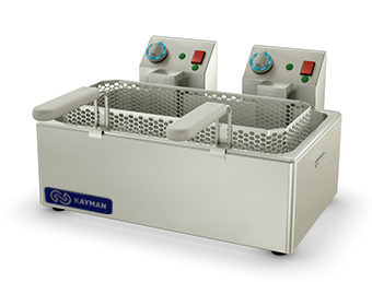 562х553х295мм, 8кВт, 220В, +50…+190 °С, настольная, фритюрная ванна (гастроемкость) GN-1/1x150, объем заливаемого масла 10л, объем фритюрной сетки 7,6л, время разогрева масла до 190°С 12 мин. Фритюрница выполнена из пищевой нержавеющей стали. Она состоит из фритюрной ванны и блока управления ТЭНом. электромощность ТЭНа оптимальны с точки зрения нагрева фритюра и сохранения его качественных характеристик в течение рабочей смены. Специальная нержавеющая решетка, закрывающая ТЭН, исключает контакт ТЭНа с продуктом, тем самым предотвращая его подгорание. Сетка из нержавеющей стали оснащена удобной ручкой с «холодной» пластиковой накладкой. Сверху ванна закрывается крышкой. Предназначена для приготовления в масле (фритюре) различных продуктов питания: мя
