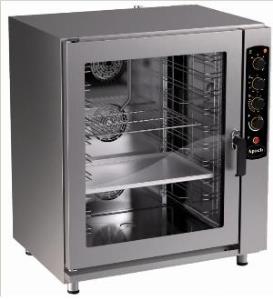920Х760Х1075 мм; масса нетто 110 кг; 400В; 13,95 кВт; 10 уровней; универсальные направляющие для гастроёмкостей GN 1/1 и противней 400х600, расстояние по высоте между уровнями 75 мм; 1 решетка GN 1/1 в комплекте; реверсивные вентиляторы; электромеханическая панель управления; 3 автоматических режима регулирования влажности/температуры [жар (температура и влажность регулируются без ограничений), пар (влажность установлена автоматически на 100%, возможно регулирование, установка температуры автоматически ограничена - не более 135 C), жар/пар (влажность установлена автоматически на 30%, возможно регулирование, установка температуры регулируется без ограничений], режим охлаждения; 1 скорость вентилятора (2800  об/мин); таймер максимум 120 минут, шаг 5 минут, режим бесконечного времени; термостат максимум 270 C; регулятор влажности; кнопка осушения камеры