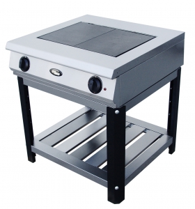 2 конфорки 295х415 мм., 6 кВт, плита полностью из нержавеющей стали, подставка - нержавеющая сталь и сталь с порошковым покрытием.