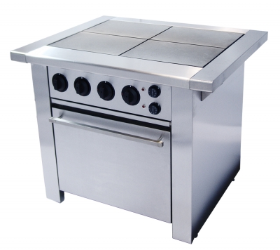 4 конфорки КЭ -0,12,4, 4-х позиционных переключателя, съемные боковые полки плиты, увеличенная духовка GN 2/1, 4 направляющих под противни и гастроемкости.