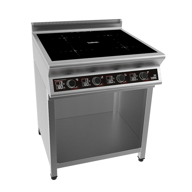 800х900х870 Плита индукционная  на полузакрытой подставке, 4 конфорки  мощностью 4х3,5кВт, электронная панель управления с цифровой индикацией,  13 уровней нагрева, таймер до 180мин., съемный жировой фильтр, корпус из н.с. AISI 304, регулируемые по высоте ножки, рабочая поверхность - стеклокерамика 6мм, 14 кВт, 380В.