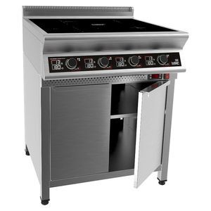 800х900х870 Плита индукционная на тепловой подставке, 4 конфорки  мощностью 4х3,5кВт, электронная панель управления с цифровой индикацией, 13 уровней нагрева, таймер до 180мин., корпус плиты из н.с. AISI 304, рабочая поверхность - стеклокерамика 6мм, мощнось подставки 1,6кВт, перф. полка регулируемая по высоте, электронная реулировка температуры до 60°С, регулируемые по высоте ножки, 15,6кВт, 380В.