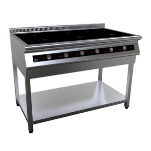 1100х700х870 Плита индукционная на открытой подставке, 6 конфорок  мощностью 6х3,5кВт, электронная панель управления с цифровой индикацией, 13 уровней нагрева, таймер до 180мин., съемный жировой фильтр, корпус из н.с. AISI 304, регулируемые по высоте ножки, рабочая поверхность - стеклокерамика 6мм, 21 кВт, 380В.