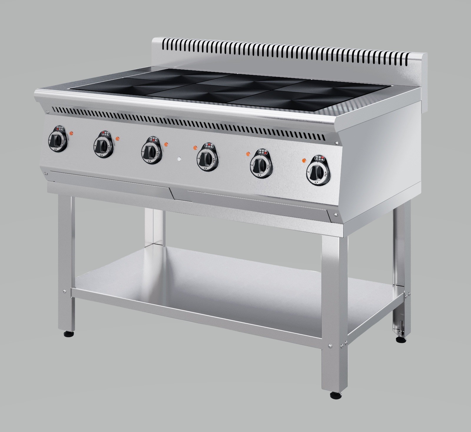 1110x700x850/940 полностью - нерж. сталь; на подставке - чугунные конфорки 300х300 мм; - все регуляторы расположены на передней панели; - мощность каждой конфорки 3кВт; - разогрев до 400 °С за 25 мин; Масса, кг 123 кг. Вес в упаковке 175 кг. Количество конфорок 6 Площадь жарочной поверхности, не более м2 0,54 м2 Размеры в упаковке (ДхГхВ) 1200 x900x1150 мм  Температура рабочей поверхности конфорок не более Со 400 Со, Поставляется в сборе