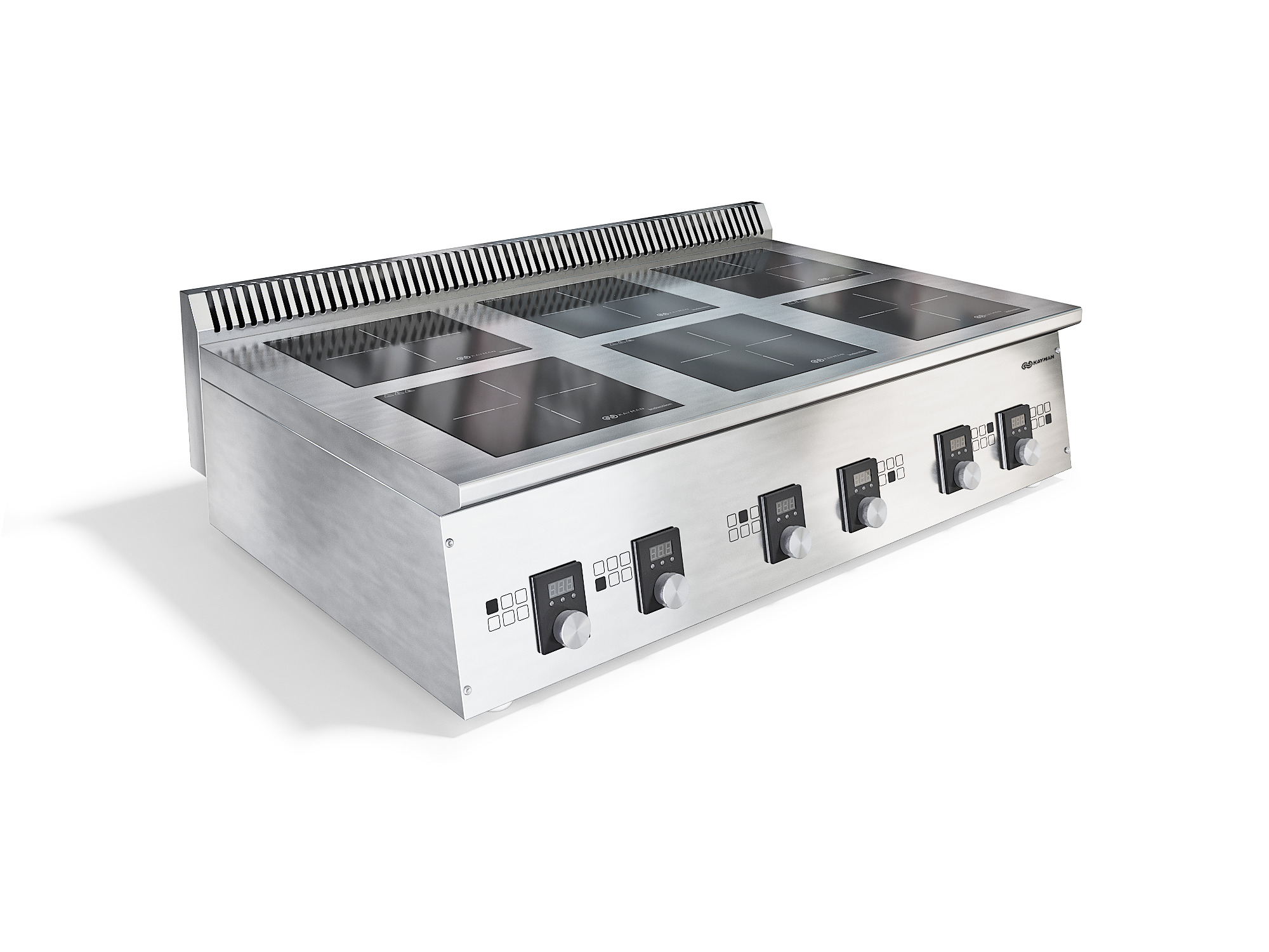 1200х760х400мм, Плита 6конфорочная плоская, столешница из нержавеющей стали марки AISI 304 толщиной 1,2 мм, корпус из нержавеющей стали марки AISI 430 толщиной 0,8мм. Мощность 6х3,5 кВт, борт высотой 70мм, питание 380В. Толщина стеклокерамики 6мм. 9 уровней мощности, безимпульсная работа. Поставляется в собранном виде. подставки: ПО-22/1207
