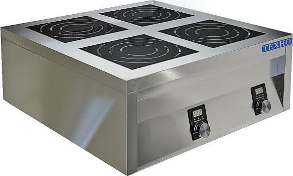 900х900х300мм, Плита 4конфорочная плоская островная, столешница из нержавеющей стали марки AISI 304 толщиной 1,2 мм, корпус из нержавеющей стали марки AISI 430 толщиной 0,8мм. Мощность 4х5 кВт, без борта, питание 380В. Толщина стеклокерамики 6мм. 9 уровней мощности. Поставляется в собранном виде., для ИПП-440147 подходят подставки СПИ-033/919, СПИ-837/919, СПИ-834/919, -, -