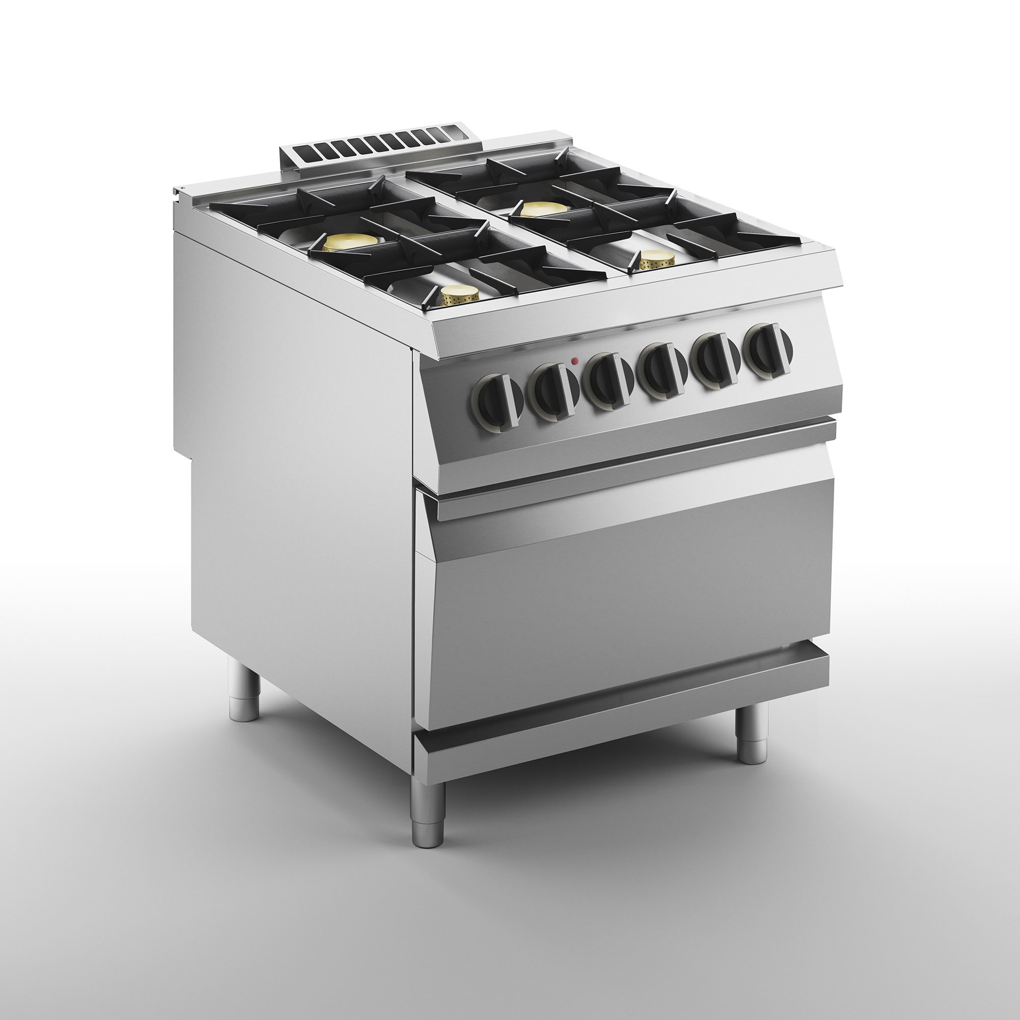 800х900х900 мм, 164 кг, газ 27 кВт, 380 В, 4 конфорки, на электрическом духовом шкафу на 6 кВт