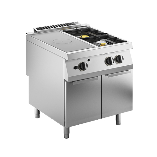 800х730х900 мм, 118 кг, газ 18 кВт, 1 зона концентрического нагрева по центру + 2 горелки слева + 2 горелки справа, на закрытой подставке