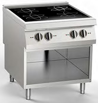 800х900х900 мм, 155 кг, 20 кВт, 380 В, 4 зоны нагрева диаметром 280 мм, на открытой подставке