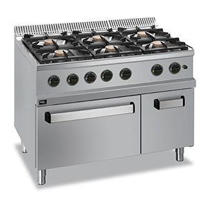 1100*700*850, газ, 6х7кВт, 6 конфорок, на газ.жар.шкафу 6кВт, направляюющие GN 2/1