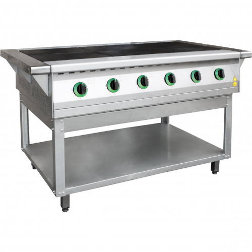 Номинальная мощность, кВт: 18; Габариты (ДхШхВ), мм: 1265(1475)х850х860(880); Габариты в упаковке (ДхШхВ), мм: 1300х920х630; Масса без упаковки, кг: 129; Материал изготовления: нержавеющая сталь; Наличие духового шкафа: Нет; Количество конфорок: 6; Входное напряжение, В: 220/380; Номинальная мощность конфорки, кВт: 3; Объем в упаковке, м3: 0,9; Масса в упаковке, кг: 150