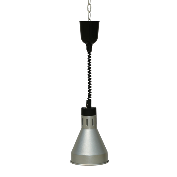 Цвет плафона "серебро", ИК-нагрев, механизм регулировки и фиксации по высоте, диаметр 175 мм, подвесной. Минимальному расстоянию до нагреваемого продукта –0, 3 м. Диапазон регулировки по высоте от 66cm до 180cm. Лампа ИК нагрева входит в комплектацию,оснащен выключателем, в комплекте крепежный элемент.