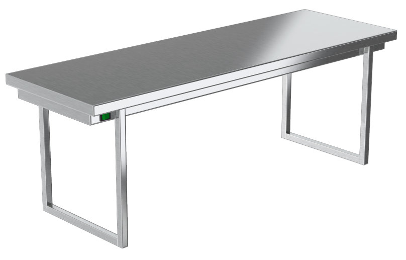 1200х300х400 Полка тепловая настольная разборная, 1 ярус. Температура в зоне действия нагревательного элемента, не более, °С +60±5°С.  Полка из нержавеющей стали марки AISI 430 толщиной 0,8мм, каркас труба 20х20 из нержавеющей стали марки AISI 430 толщиной 1,2мм. Мощность 1,2кВт. Поставляется в разобранном виде., вес 6,06кг