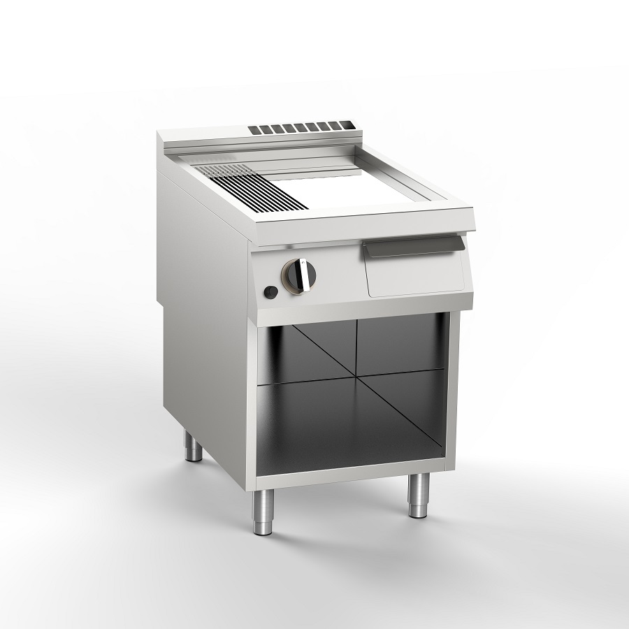 600х900х900 мм, 130 кг, газ 14 кВт, 1/3 рифленая хром, 2/3 гладкая хром, на открытой подставке, термостат нерж. сталь Aisi 304