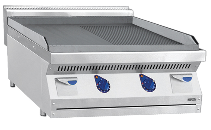 802x750x470мм, Аппарат контактной обработки АКО-80/1Н-С-00, стальная поверхность 790x650 мм, 1/2 гладкая - 1/2 рифленая, 700 серия, 802х750х470 мм, 9 кВт, 400 В, настольный, вся нерж.