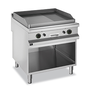 800*900*850 мм, газ 2х8 кВт, материал рабочей поверхности - конструкционная сталь, 2/3 гладкая 1/3 рифленая, на откр.стенде